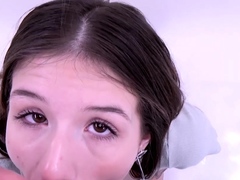 Plump teen with a fat ass and titties sucks an 8 inch cock