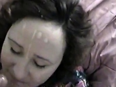 Girl gives blowjob and hubby sprays her with big facial