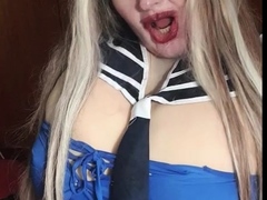 Susi is wearing a sailor outfit sucking giving a toy blowjob