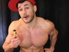 Muscular jock sneaks away to play with himself